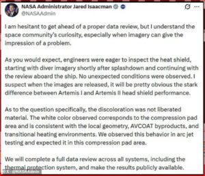 Nëse konfirmohet përfundimisht, kjo do të thotë se mburoja termike e Orion funksionoi sipas pritshmërive, pavarësisht shqetësimeve të mëparshme.