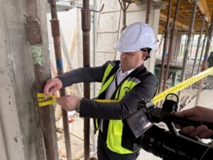 “Është konstatua se mungojnë masat e sigurisë dhe shëndetit në punë. Përfshirë skelet, të përfshira hapësirat që do të pastrohen, do të mbyllen hapësirat e liftit, si dhe kontrolla e skeleve. Pra do të bëhet një kontroll e skeleve në mënyrë që të jenë të sigurta për punë gjatë kësaj vendpunishti. Do të përforcohen shkallët,, jo me ashtu të armaturës siç janë vendosë. Po ashtu do të pastrohet secila hapësirë në mënyrë që punëtorët të ndihen të sigurt gjatë ecjes, siç e pamë pak ma herët. Ne tani do ta hartojmë një raport në bazë të kësaj gjendje, do ta lëmë raportin, do të konstatojmë në mënyrë që brenda afati të paraparë ju t’i merrni masat. Dhe deri në marrjen e masave nuk lejohet puna. Ndërsa sa i përket dokumentacionit, i keni këto tre ditë me na e sjellë dokumentacionin lidhur me.pjesën e marrëdhënies investitor me punëkryes, kontrollat mjekësore për punëtorët, si dhe gjithë dokumentacionin të cilin do t’jua shkruajmë: vlerësimin e rrezikut dhe të gjitha, trajnimin e punëtorëve”, tha ai, raporton Ekonomia Online.