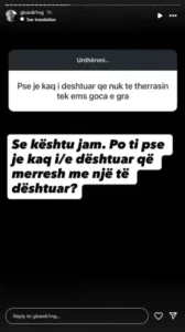 Këngëtari dhe ish-banori i “Big Brother VIP Albania”, G-Bani, ka reaguar me ironi ndaj kritikëve në rrjetet sociale. Gjatë një sesioni pyetje-përgjigje në Instagram, artisti mori dhjetëra komente nga ndjekësit, mes tyre edhe disa me tone ofenduese.