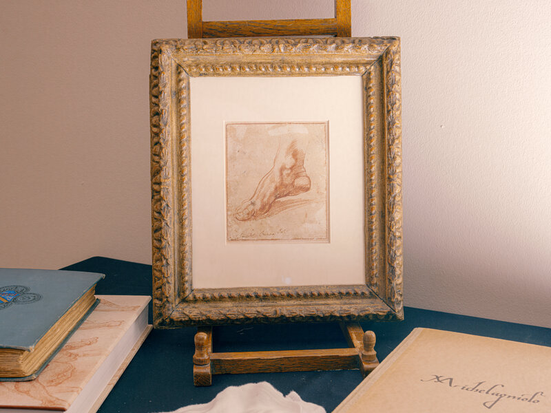 Mjeshtri italian i Rilindjes bëri skicën, të titulluar “Studim për një këmbë të Sibilës libiane”, rreth vitit 1510, ndërsa përgatitej të pikturonte këmbën e djathtë të figurës së njohur si Sibila libiane për tavanin e Kapelës Sistine.