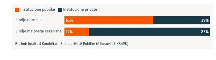 Por, sipas të dhënave të Institutit Kombëtar të Shëndetësisë Publike të Kosovës, ky trend nuk është i njëjtë në të gjitha institucionet: në vitin 2024, spitalet private dominuan për nga numri i lindjeve me prerje cezariane.