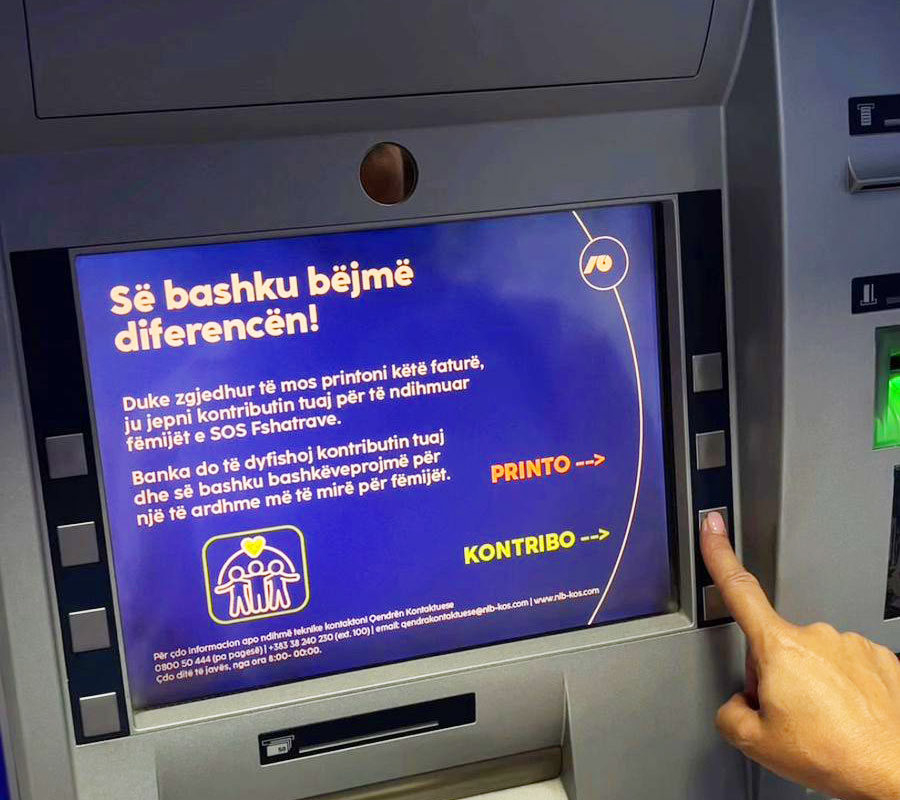 Tani, çdo klient i NLB Bankës, gjatë përdorimit të bankomatit, ka mundësinë të zgjedhë mos ta printojë faturën e transaksionit, dhe shumën e kursyer nga kjo zgjedhje mund ta dhurojë për fëmijët në nevojë.