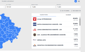 Lidhja Demokratike e Kosovës aktualisht ka 11.12% apo 464 vota.