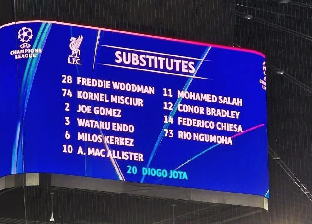 Mbrëmë, drejtuesit e Eintrachtit u siguruan që Jota të mos harrohej. Gjatë prezantimit të skuadrave, në ekranin gjigant të stadiumit u shfaq formacioni i Liverpoolit me 11 lojtarë rezervë, ndonëse trajneri Arne Slot kishte futur në stol vetëm 10.