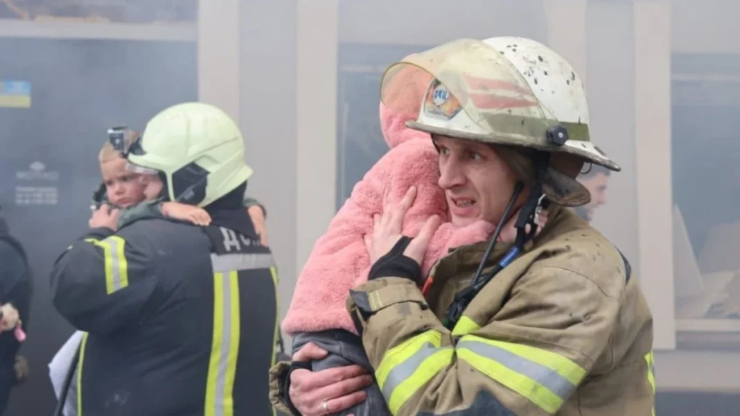 💔🇺🇦 Ukrainian police show how children were rescued after a Russian strike on a kindergarten in Kharkiv