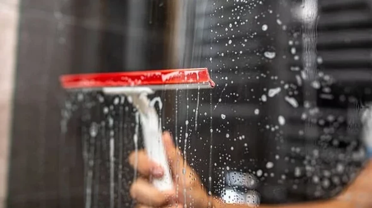 “Përdorini pas çdo dushi për të hequr ujin nga dera dhe muret e xhamit.