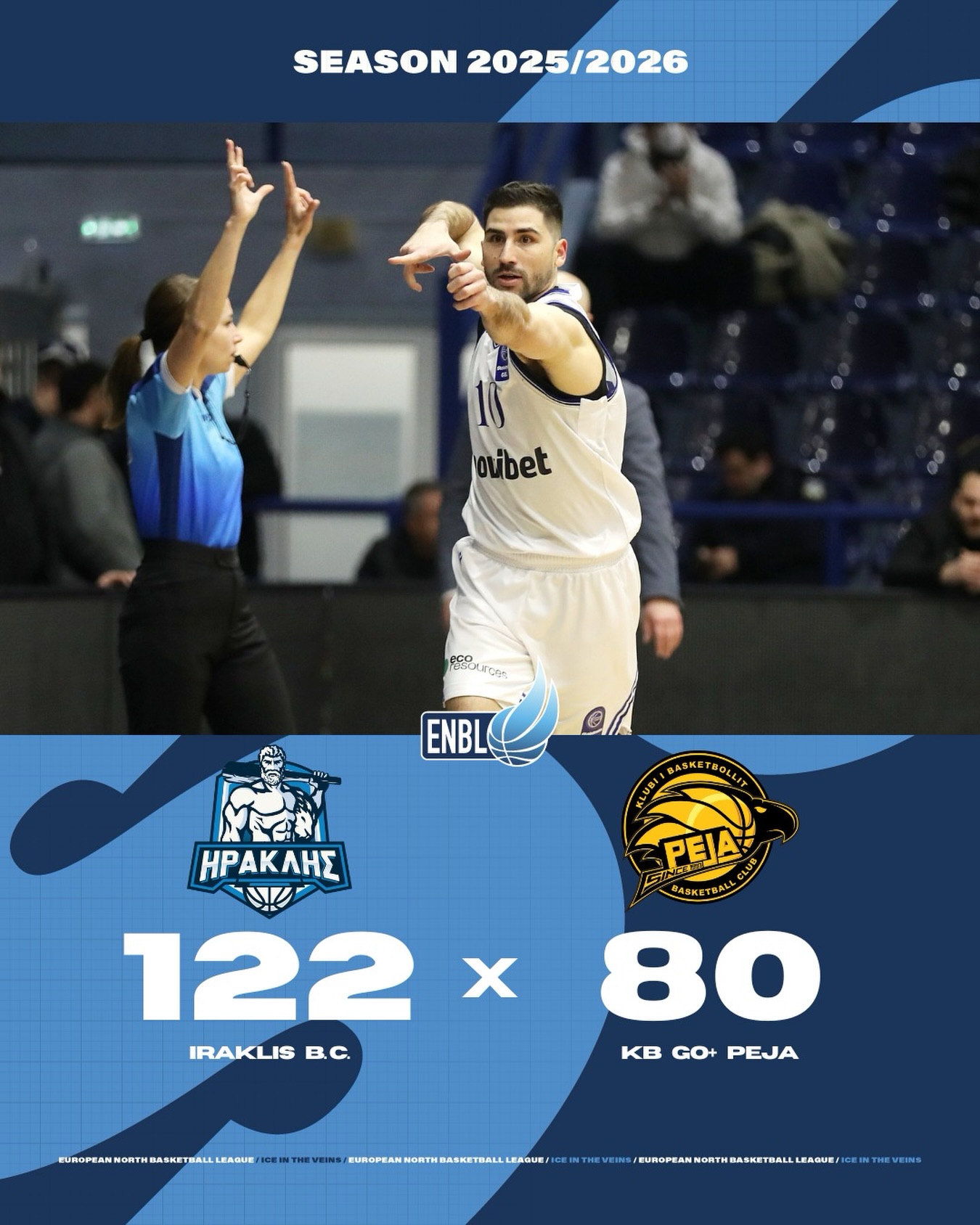 GO+Peja ka pësuar humbje të thellë ndaj ekipit grek Iraklis me rezultat 122:80,takim ky në kuadër të ENBL League.