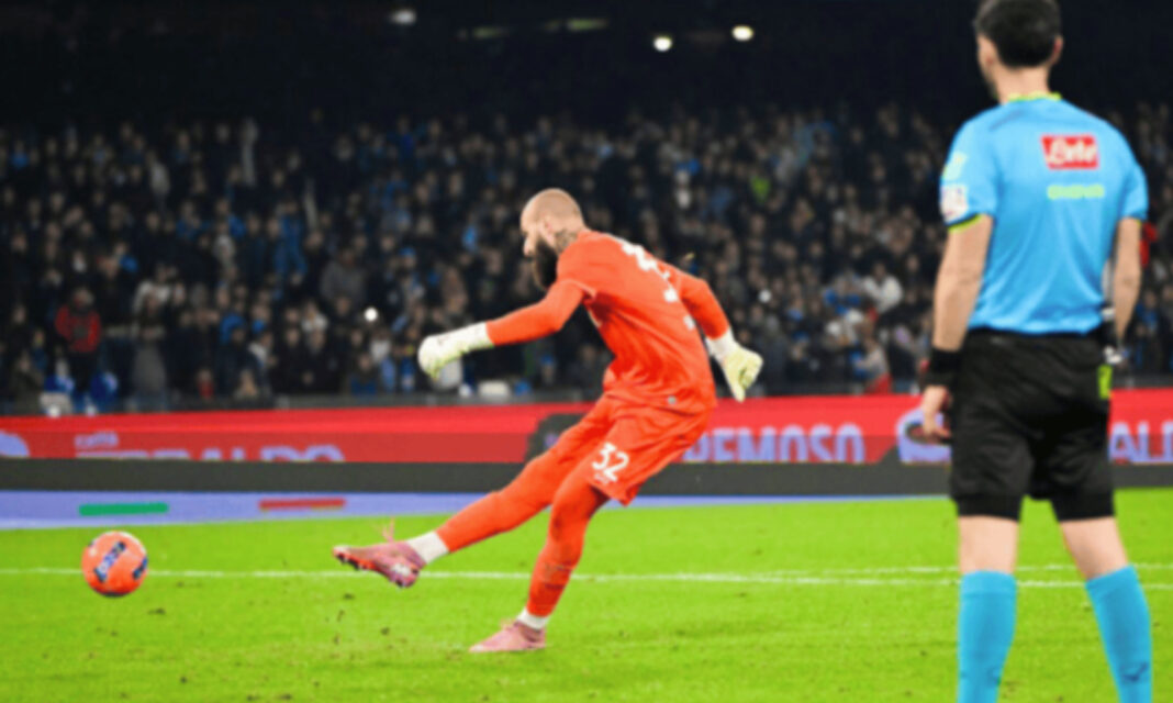 Një goditje e rrallë që po bën xhiron e botës — dhe një moment spektakolar për portierin e Napolit.