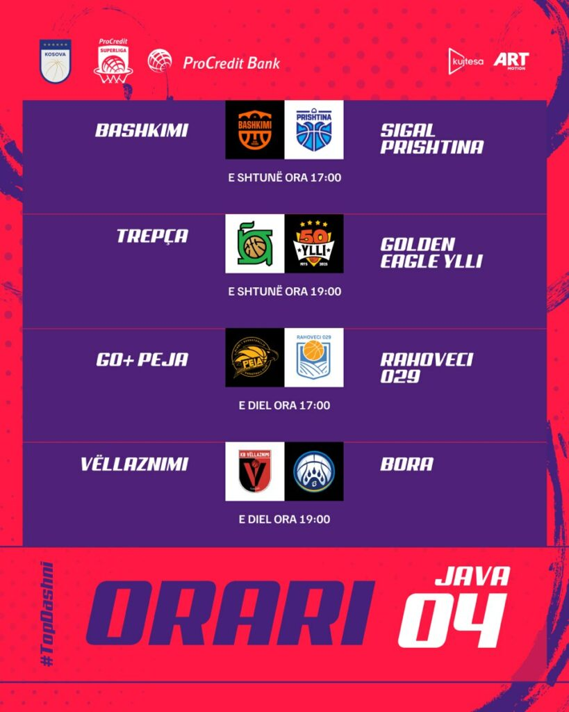 Derbi i kësaj jave është ndërmjet Bashkimit dhe Sigal Prishtinës, dy skuadrave që në tri ndeshjet e para kanë shënuar tri fitore, ndeshje e cila nis nga ora 17:00.