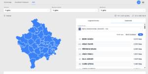 Kur janë procesuar 2.89% apo 74 vendvotime nga 2,557 sa janë gjithsej, në Lëvizjen Vetëvendosje, kreu i kësaj partie, Albin Kurti deri tani ka marrë 8 mijë e 84 vota.