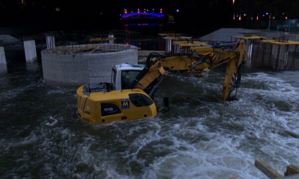Një sasi e madhe e ujit ka përfshirë punishten ku po ndërtohet ura e re e Ibrit në Mitrovicë.