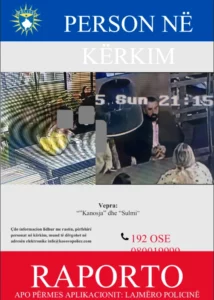 Me qëllim të avancimit të procedurës hetimore, Policia e Kosovës ka ftuar të gjithë qytetarët që, nëse posedojnë informacione që mund të ndihmojnë në identifikimin apo lokalizimin e personit të dyshuar, i cili shihet në fotografinë e bashkangjitur, të kontaktojnë autoritetet përmes numrit emergjent 192, stacionit më të afërt policor ose përmes adresës elektronike zyrtare [email protected].