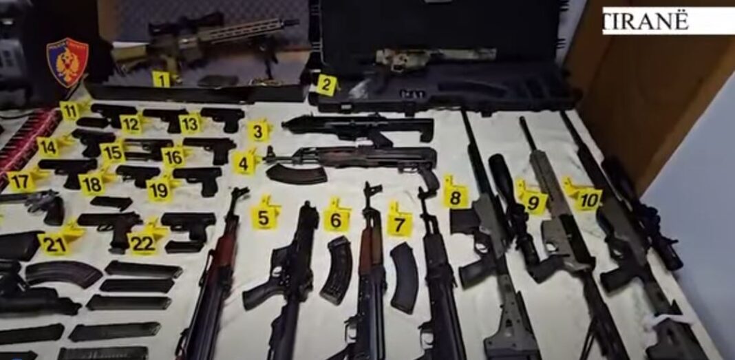 ” Sekuestrohen 23 armë zjarri (5 prej tyre me snajper), 1 silenciator, 17 krehra me municion luftarak, celularë dhe pajisje për shpërthime në distancë, paisje për bllokimin e valëve, uniforma si të Policisë dhe sende të tjera të kundërligjshme”, thuhet në njoftimin e Policisë së Shtetit, transmeton Klankosova.tv.