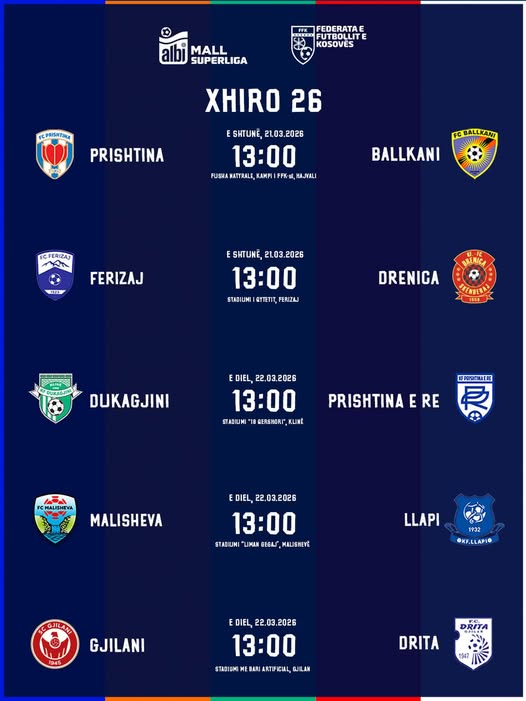 Kjo fundjavë pritet të sjellë xhiron e 26-të të Albi Mall Superligës së Kosovës në futboll,ku në program pritet të ketë ndeshje mjaft interesante.