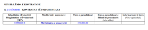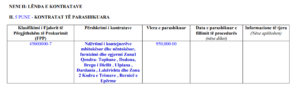 “Ndërtimi i kontejnerëve mbitokësor dhe nëntokësor, furnizimi dhe zgjermi Zona1 Qendra- Tophane , Dodona, Bregu i Diellit , Ulpiana , Dardania , Lakërishta dhe Zona 2 Kodra e Trimave , Bernicë e Epërme”, thuhet në dosjen e kontratës, e cila kap vlerën e 950 mijë eurove.