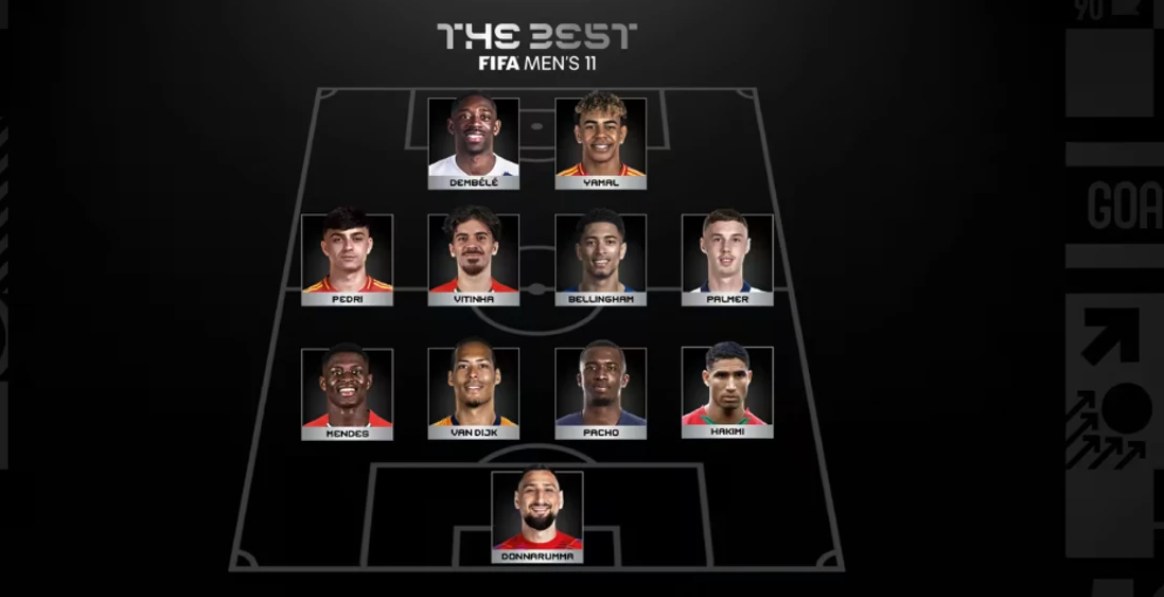 Pjesë e “The Best 11” janë edhe fituesi i Topit të Artë të Kupës së Botës për Klube, Cole Palmer, si dhe talenti i jashtëzakonshëm spanjoll Lamine Yamal, i cili vazhdon të mahnisë botën e futbollit pavarësisht moshës së re.