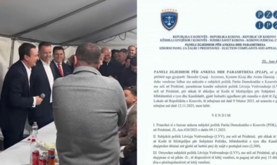 “Më datë 08.11.2025, në oborrin e shkollës në fshatin Bajgorë, e cila është caktuar të shërbejë si qendër votimi për datën 09.11.2025, është zhvilluar një tubim elektoral nga kandidati për kryetar të Komunës së Mitrovicës, Faton Peci. Gjatë këtij aktiviteti politik, kandidati dhe përfaqësues të tjerë të subjektit Lëvizja Vetëvendosje (LVV) kanë vendosur një tendë në hapësirat e shkollës, kanë mbajtur fjalime dhe kanë zhvilluar aktivitete elektorale pa marrë paraprakisht leje nga Komisioni Komunal Zgjedhor (KKZ) dhe pa miratimin e drejtorit të shkollës, siç parashihet me ligj”.