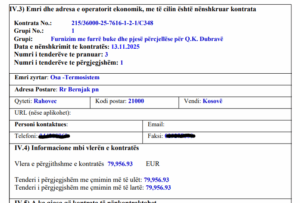 Vlera e kontratës fillimisht ka qenë 85 mijë euro, derisa për të njëjtin tender kanë aplikuar 3 ofertues.
