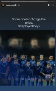 Mesazhi i saj nënvizon respektin dhe krenarinë për paraqitjen e ekipit, pavarësisht humbjes.