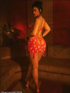 Ajo u shfaq me reçipeta me dekolte të thellë, tanga dhe minifund, ndërsa imazhet u komentuan gjerësisht nga fansat, të cilët e quajtën “më tërheqëse se kurrë”.