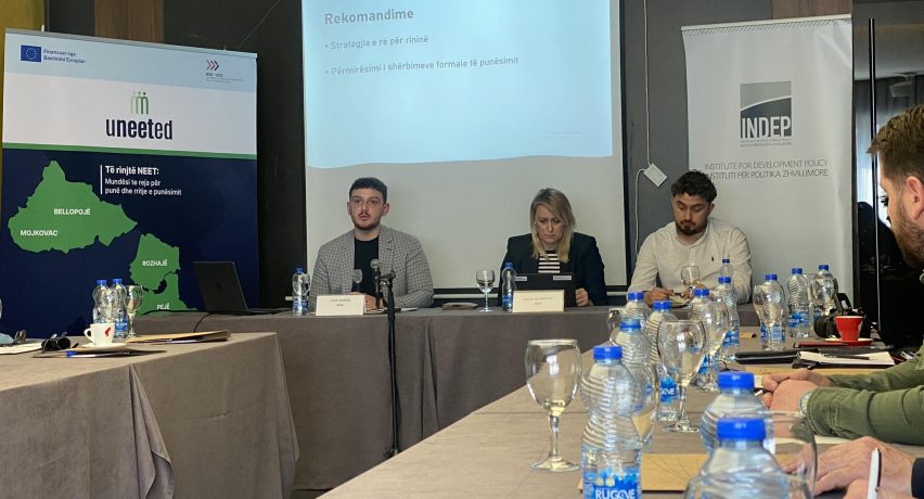 Instituti për Politika Zhvillimore (INDEP) në bashkëpunim me Institutin për Studime dhe Prognoza Strategjike (ISSP) kanë prezantuar hulumtimin etnografik “Hulumtimin mbi popullatën NEET për tre komuna të Kosovës – Pejë, Deçan dhe Junik”.