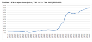 Në krahasim me të njëjtën periudhë të vitit paraprak, përkatësisht TM4 2025 me TM4 2024, Indeksi i Kostos së Ndërtimit ka shënuar rritje për 3,5 për qind (sipas të dhënave detajuese 3,6%).