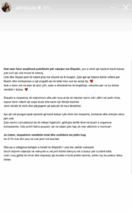Me këto fjalë, Selvije kërkoi që publiku të respektojë vendimin e saj dhe të Shpatit, duke kujtuar se përtej çdo lajmi, qëndron një familje dhe një fëmijë që meriton qetësi.