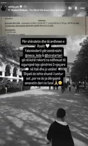 “Për shëndetin dhe të ardhmen e Roelit. Faleminderit përzemërsisht që në kohë rekord na ndihmuat të sigurojmë leje qëndrimi 3-vjeçare në Itali dhe jo vetëm!” – ka shkruar Selvija, duke falënderuar personat që e asistuan në këtë proces.