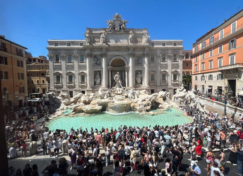 Shatërvani i Trevit tërheq çdo ditë dhjetëra mijëra turistë për foto dhe për hedhjen tradicionale të monedhave, duke e kthyer zonën përreth në një hapësirë shpesh kaotike.