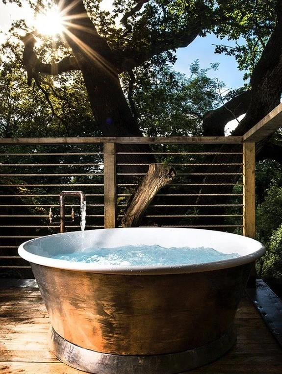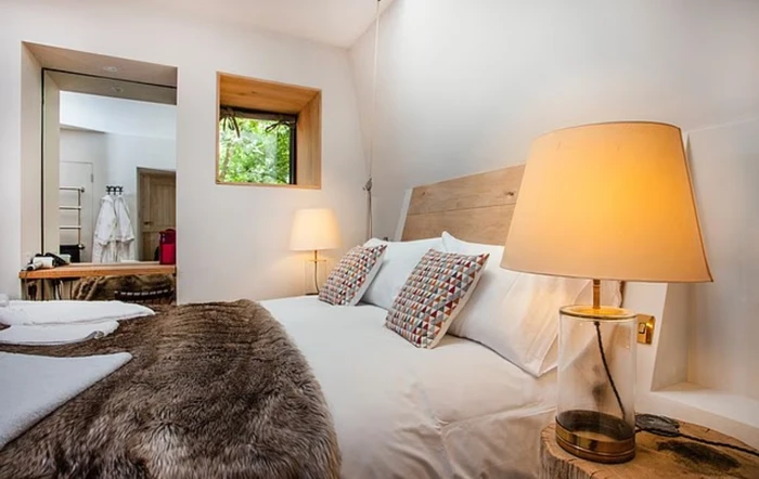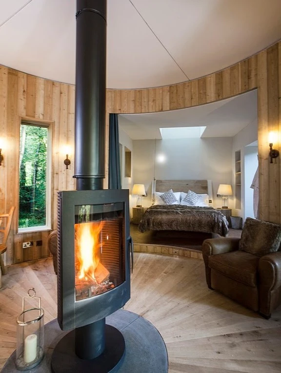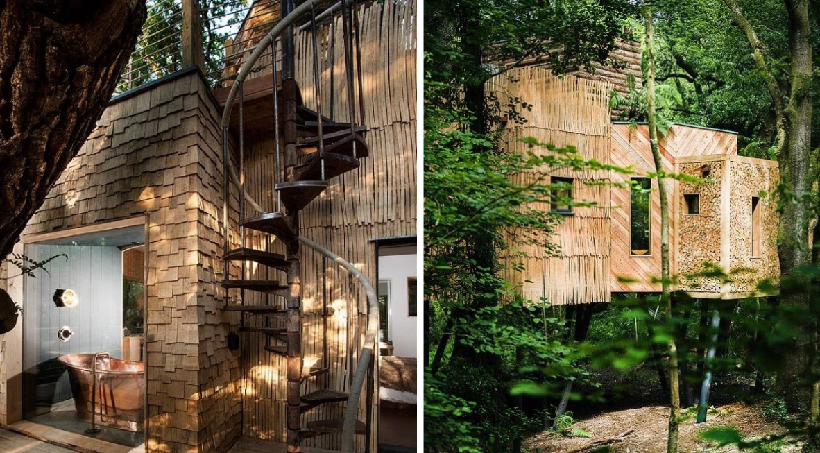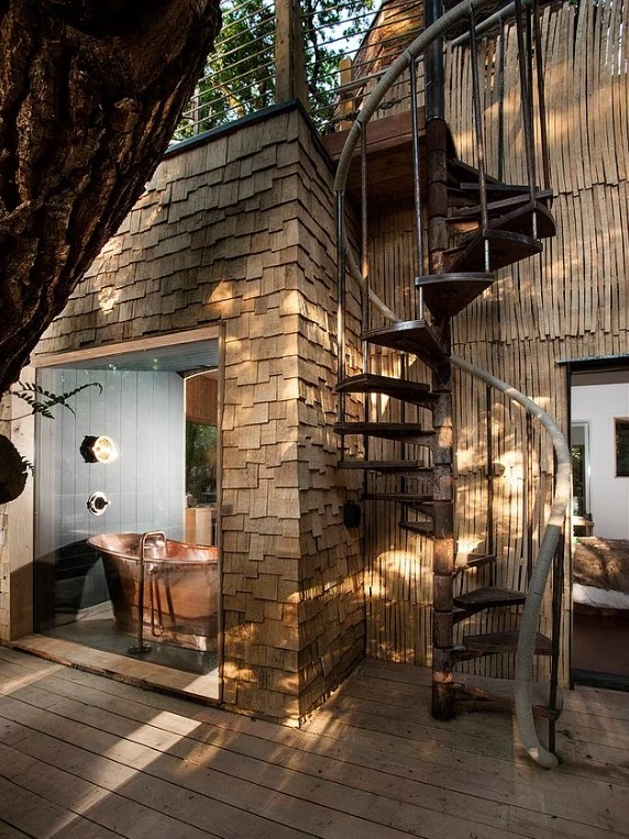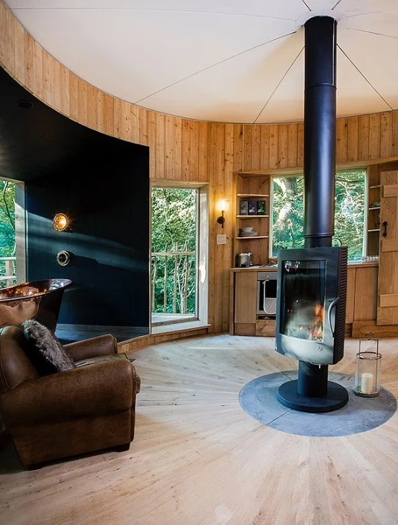 Shtëpia e parë në pemë e Woodman e krijuar në vitin 2016 është në një lis të lashtë, që vjen me një saunë në çati dhe vaskë të nxehtë, si dhe një shporet druri dhe dush pemësh.