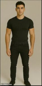 Mashkulli ideal: sy kafe, hundë e vogël, buzë zemër, flokë kafe të errët me stil fade të shkurtër, trup trapezoid, lartësi 1.78–1.83 m.
