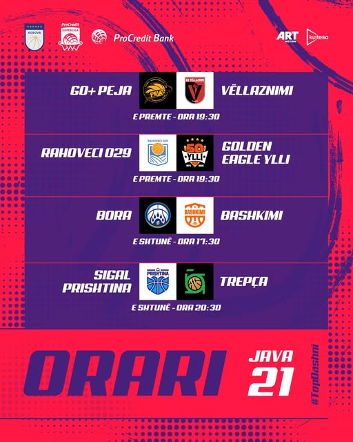 Të premten pritet të zhvillohen dy takime të tjera në Procredit Superligë,ku Bashkimi synon të harrojë humbjen në finale të Kupës dhe të shënojnë fitore ndaj Boras,teksa Golden Eagle Ylli luan në udhëtim kundër Rahovecit 029 kurse të shtunën zhvillohet vetëm një takim ku GO+Peja e pret Vëllaznimin.