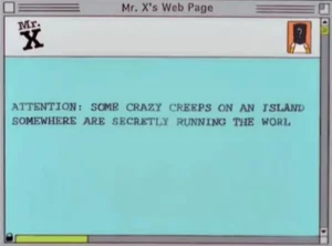 Një skenë nga episodi, e shkruar nga John Swartzwelder dhe me regji nga Mark Kirkland, përmbante një njoftim në Z. X ku shkruhej: “Vëmendje: Disa të çmendur në ndonjë ishull sundojnë fshehurazi botën”.