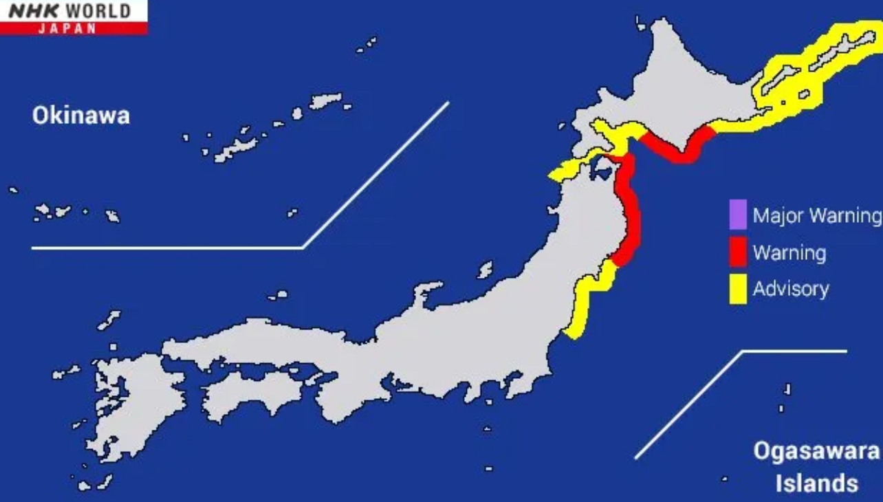 Agjencia Meteorologjike e Japonisë (JMA) ka lëshuar paralajmërim për cunami deri në 3 metra në bregdetin verilindor të vendit, pas një tërmeti të fortë me magnitudë 7.6 që goditi detin të hënën.
