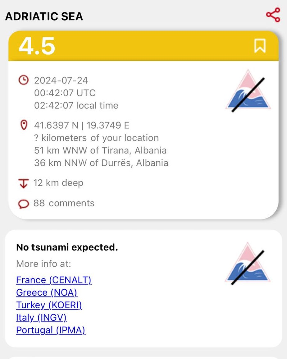 Një tërmet e ka tronditur Shqipërinë në orët e para të mëngjesit të së mërkurës. Raportohet se lëkundjet kanë qenë me magnitudë 4.6 të shkallës së rihterit.