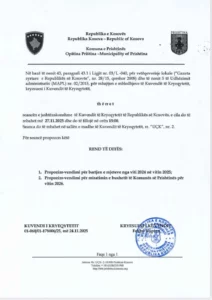 Thirret seancë e jashtëzakonshme e Kuvendit të Prishtinës për mjetet vetanake dhe buxhetin 2026