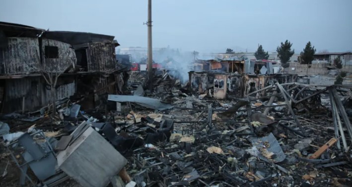Pamjet nga mediat lokale tregojnë flakë që përfshinin një ndërtesë me një kat, ndërsa tymi i dendur dilte nga një pjesë tjetër e të njëjtit kompleks dhe punëtorët merrnin trupa me barela.