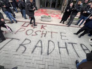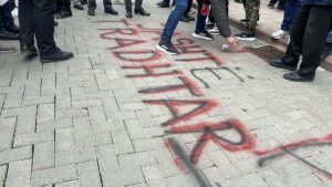 “UÇK – Poshtë tradhtarët”,ishte një nga shkrimet e shkruara para Kuvendit.