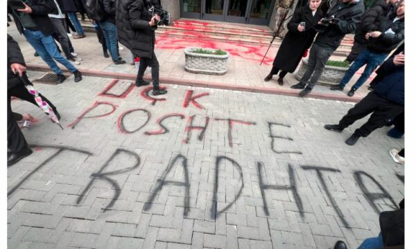 “UÇK – Poshtë tradhtarët”,ishte një nga shkrimet e shkruara para Kuvendit.
