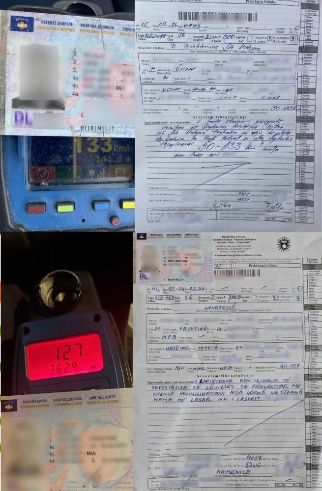 Policia e Kosovës për rajonin e Gjilanit gjatë kontrolleve në trafik, kanë hasur në dy kundërvajtës, njëri në zonën ku kufizimi i shpejtësisë së lejuar është 40 km/h duke vozitur me 127 km/h dhe tjetri në zonën ku kufizimi i shpejtësisë së lejuar është 50 km/h duke vozitur me shpejtësinë 133 km/h.
