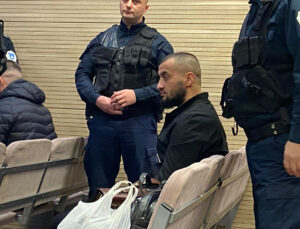 Naim Murseli dhe dy të akuzuarit e tjerë të prangosur dhe nën masa të rrepta sigurie janë sjellë në gjykatë.